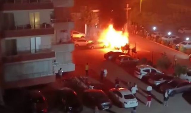 Diyarbakır'da park halindeki araç alev topuna döndü