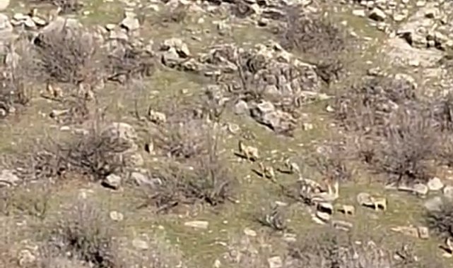 Doğal güzellikleri ile ünlü Diyarbakır'ın Çermik ilçesi, yaban hayvanlarının mekanı olmaya devam ediyor. İlçede nesli tükenme tehlikesi altında bulunan dağ keçileri sürü halinde yiyecek ararken görüntülendi.