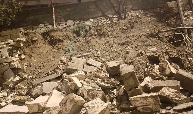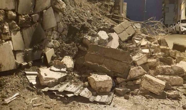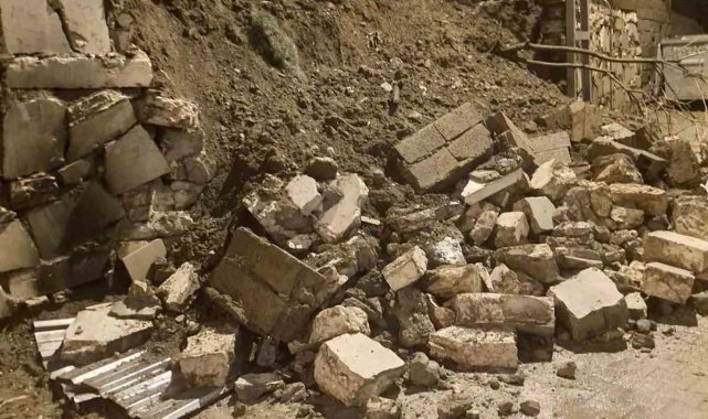 Diyarbakır'ın Çermik ilçesinde bir binaya ait istinat duvarı, sağanak yağış nedeni ile çöktü.