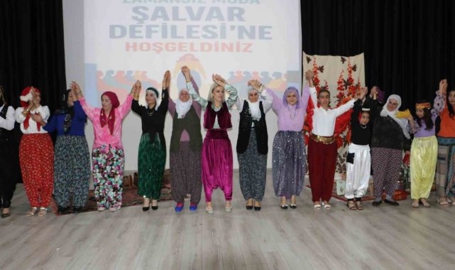 Konuşmaların ardından Diyarbakır, Adana, İzmir, Mardin, Elazığ ve Şanlıurfa'nın da içinde bulunduğu 7 bölgeye ait özgün şalvar tasarımları podyumda sergilendi. Geleneksel dokuların modern kesimlerle buluştuğu defile izleyicilerden tam not aldı.
