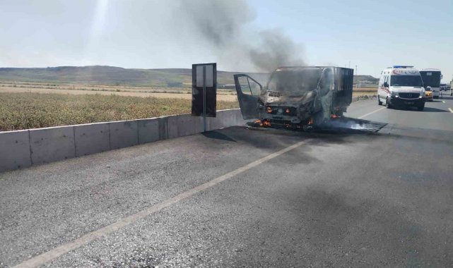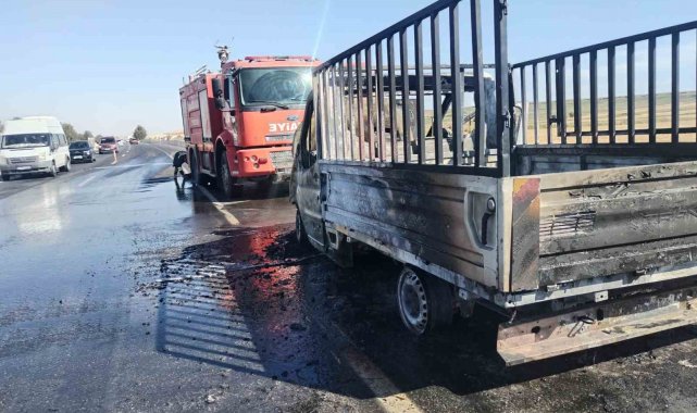 Diyarbakır'ın Bismil ilçesinde seyir halindeki kamyonet, alev alması sonucu kullanılamaz hale geldi.