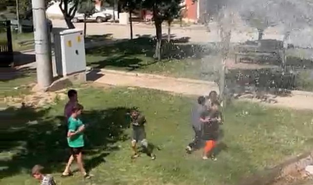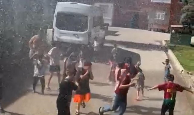 Diyarbakır'da hava sıcaklığı 40 derecenin üzerinde seyrediyor. Vatandaşlar, serinlemek için serin yerler ve sulak yerlere gitmeyi tercih ediyor. Çınar ilçesinde ise çocuklar, yanlarından geçen su tankeri sürücüsünden üzerlerine su sıkmasını istedi. Sürücü, çocukların talebini geri çevirmeyerek, tazyikli su sıkıp serinlemeleri ve eğlenmelerini sağladı. Çocukların o anları cep telefonuyla görüntülendi.
