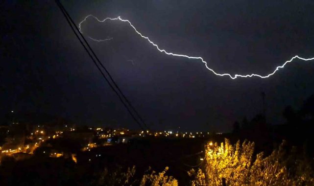 İlçede dün gece saatlerinde beliren kara bulutlar ve yoğun gök gürültüsüyle birlikte çakan şimşekler korkulu anlar yaşattı. Peş peşe çakan şimşekler, geceyi aydınlattı. Şimşeklerin görsel şöleni, cep telefonu kamerasıyla kaydedildi.