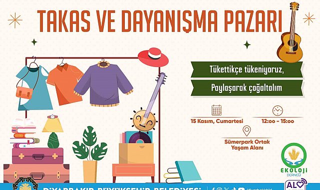 İklim Değişikliği ve Sıfır Atık Dairesi Başkanlığı ile Ekoloji Derneği işbirliğiyle, tüketim kültürüne karşı paylaşımı yaygınlaştırmak amacıyla "Tükettikçe tükeniyoruz, paylaşarak çoğaltalım" mottosuyla etkinlik gerçekleştirilecek. Etkinlik, 15 Kasım Cumartesi Saat 12.00 ile 15.00 saatleri arasında Sümerpark'ta gerçekleştirilecek. Giyim, teknoloji ürünleri ile kitap, dergi ve takılar gibi birçok ürünün yer alacağı pazarda, yurttaşlar istediği ürünü yanlarında getirdikleri ürünlerle değiştirebilecek.