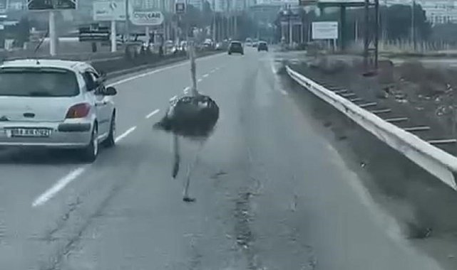 Çiftlikten kaçan deve kuşu, Diyarbakır-Batman karayoluna girdi. Trafikte deve kuşunu gören sürücüler, zor anlar yaşadı. Deve kuşunun trafikte koştuğu anlar cep telefonu kamerasına yansıdı.