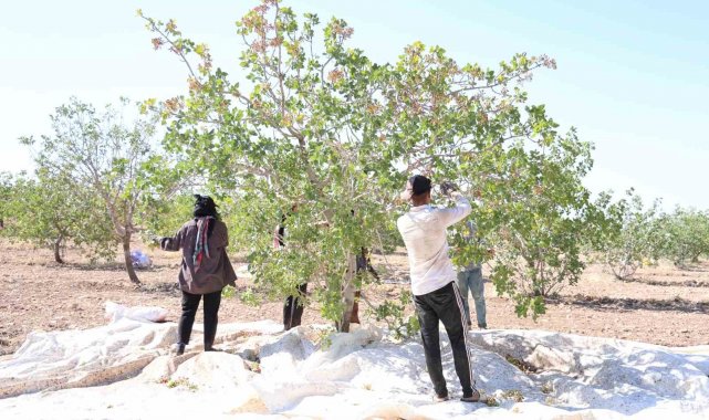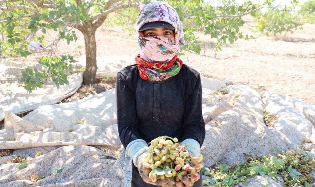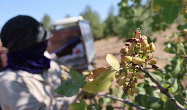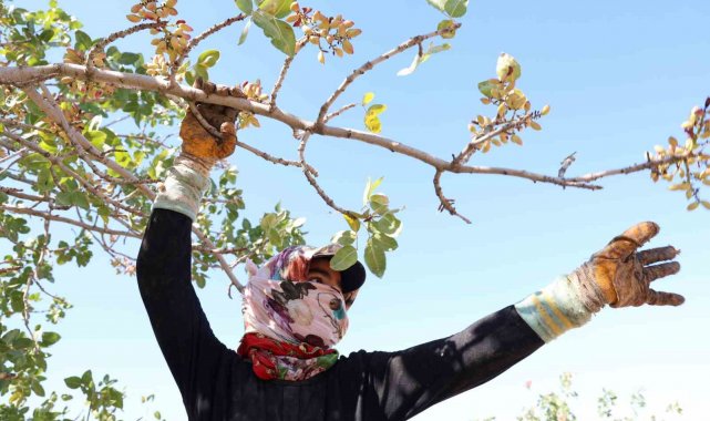 Diyarbakır'ın Çınar ilçesinin geniş arazilerinde dikilen 'Yeşil altın' olarak nitelendirilen fıstıkta hasat başladı.