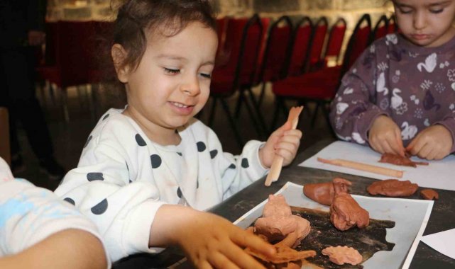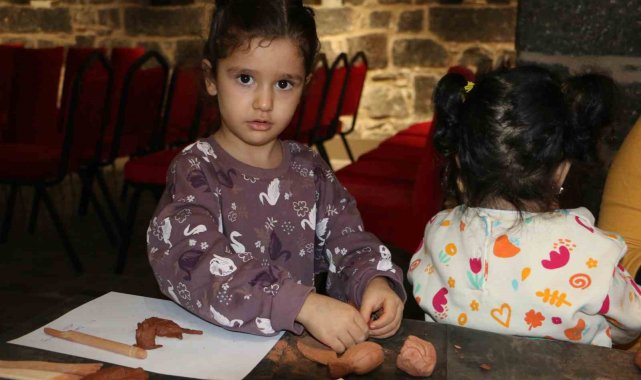 Diyarbakır'daki İçkale Müzesi'nde bulunan çocuk atölyesinde çocuklar kilden kendi eserlerini oluşturup sergileme fırsatı buluyor.