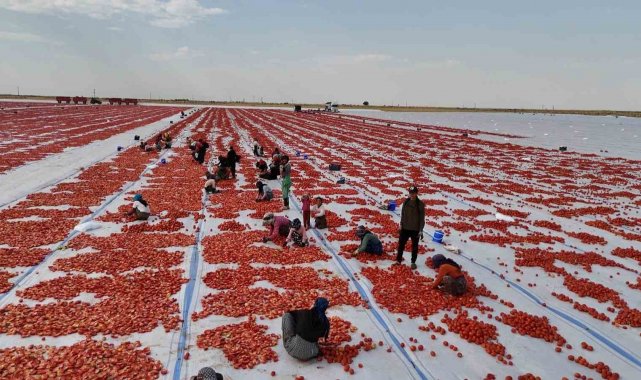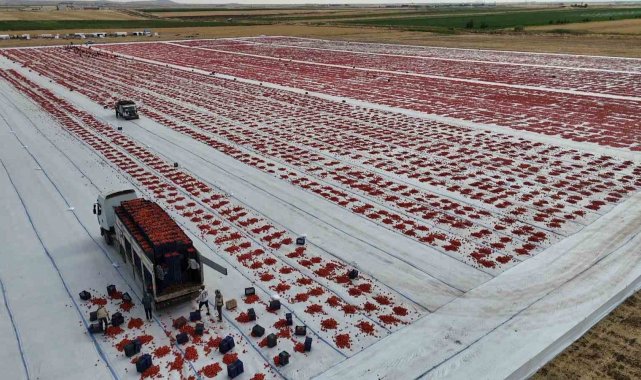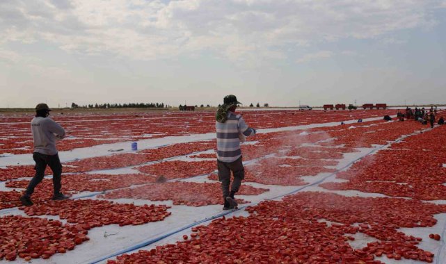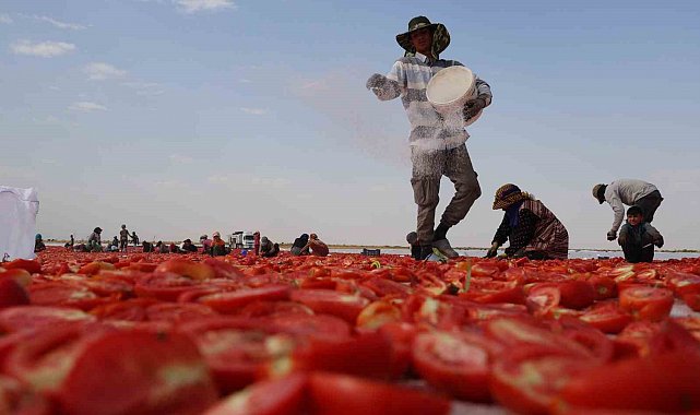 Hasat edilen ve alınan domatesler, işçiler tarafından serilen sentetik kumaş üzerine ikiye bölünüp tuzlanıyor. Kentte 40 derece üzeri kavurucu sıcakta yapılan bu işlemin ardından toplanan domatesler, işlendikten sonra İtalya, Fransa ve İngiltere gibi Avrupa'nın birçok ülkesine ihraç edilip meze ve pizza sosu olarak kullanılıyor.