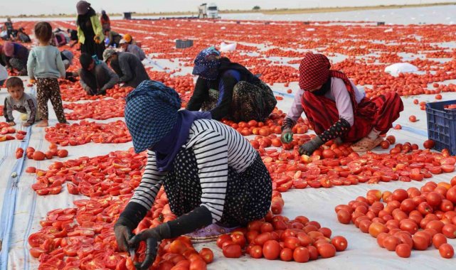 Çalışmaya yaklaşık 15 gündür geldiklerini aktaran İlik, "Serilmesi bir hafta sürüyor. Domates kesimine de yaklaşık iki gündür başladık. Yaklaşık 50 derece hissediyoruz, daha fazla, havalar çok sıcak. 7 kilo yaş domatesten 1 kilo kuru domates çıkıyor. Bu görülen tırlar da dışarıdan geliyor. Kendimiz de yaklaşık 2 bin dönüm domates ektik. Dışarıdan da ayrıca alım yapıyoruz. Yaş domatesin kilosunu 6-6,5 civarı alıyoruz. Bunun birçok masrafı oluyor. İşçilik, toplanması, yol gibi masrafları oluyor" şeklinde konuştu.