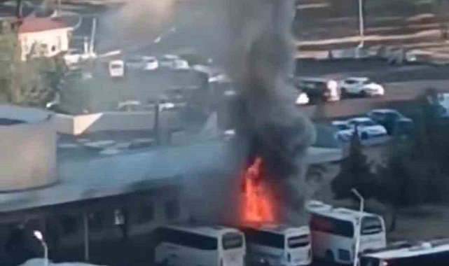 Diyarbakır Otogarı'nda park halindeki otobüs alevlere teslim oldu