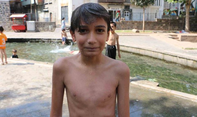 Diyarbakır'da artan sıcaklık 40-45 dereceleri buluyor. Çocuklar sabahın erken saatlerinde uyanır uyanmaz süs havuzlarına akın ediyor.