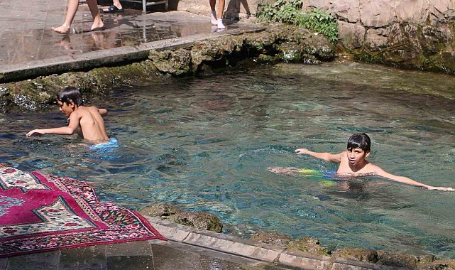 Diyarbakırlı çocuklar yataktan kalkıp süs havuzuna koşuyor