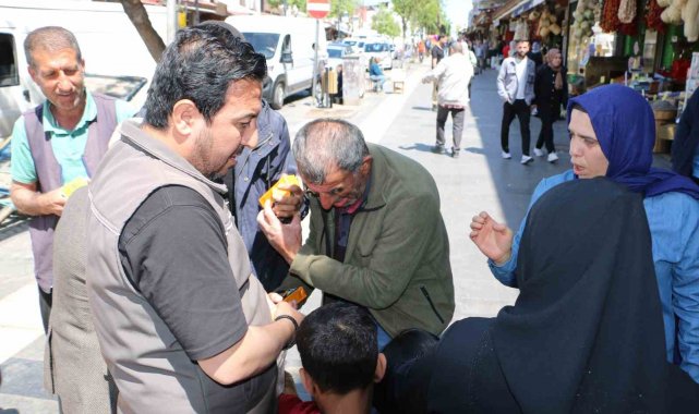 ''Ben de niyet etmişim. Ben sağ olduğum sürece her gün 30 adet, 40 adet dağıtıyorum anne ve babamın hayrına. Ben başlıyorum dağıtmaya millete giriyor hoşuna gidiyor onlar da başı dağıtmaya."