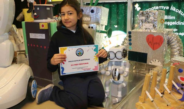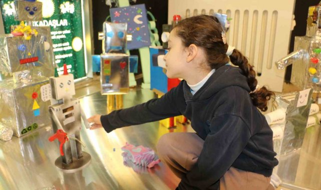 Diyarbakır'da Mezopotamya İlkokulu öğrencileri, atık malzemelerden robotlar yapıp sergiledi.