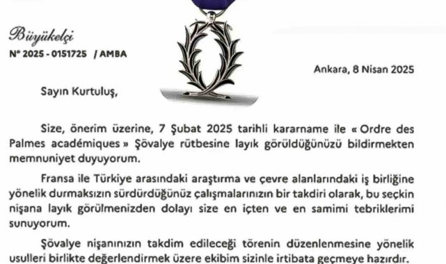 Doç. Dr. Kurtuluş; hidrojeoloji, su kaynakları yönetimi, yapay zekâ uygulamaları ve uzaktan algılama gibi alanlardaki uluslararası akademik başarılarının yanı sıra, Fransa ile Türkiye arasında uzun yıllardır yürüttüğü bilimsel iş birlikleri ve burs programları sayesinde bu yüksek onura layık görüldü.