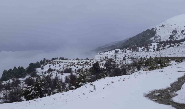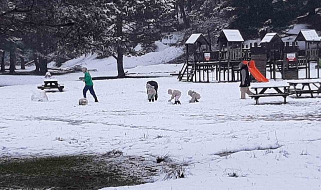 Bolu'nun doğa harikası Abant Gölü Milli Parkı beyaza büründü. Kar kalınlığı 10 santimetreye ulaştı.