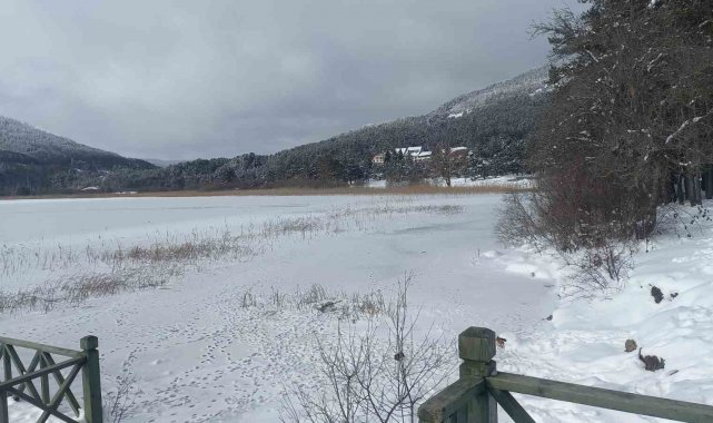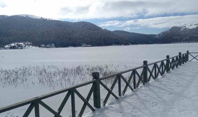 Türkiye'nin önemli turistik yerlerinden Abant Gölü Milli Parkı'nda, kar yağışı aralıklarla etkisini sürdürüyor. Soğuk havanın etkisiyle tamamen buz tutan gölde, yeşil alanlarda kar kalınlığı 20 santimetreye ulaştı. Donmuş göl, ziyaretçilere kartpostallık manzaralar sunarken, bölgenin doğal güzellikleri de hayranlık uyandırdı.