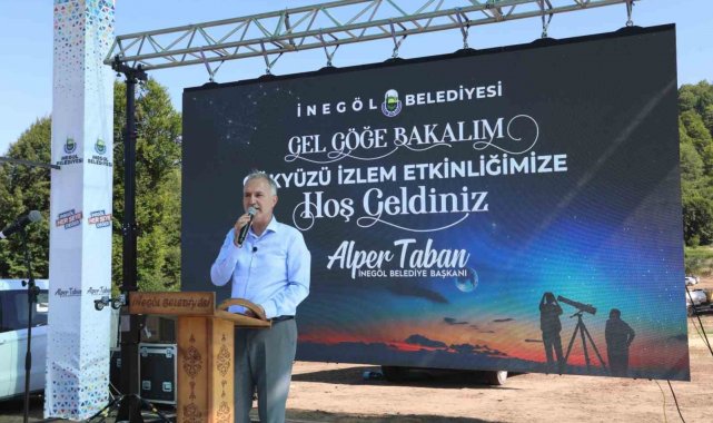 Başkan Alper Taban konuşmasının devamında, "Burada; bilim insanlarımız gökyüzünü anlatıyor, Astronomlarımız Güneş'i, gezegenleri ve yıldızları tanıyor olacaklar. Çocuklarımız çeşitli atölyelerde bilimle tanışıyor, Gençlerimiz yıldızlarla hayaller kuruyor ve biz, hep birlikte İnegöl'ümüzün bu eşsiz güzelliğinin farkına varıyoruz. Bu anlamlı yolculukta bize omuz veren tüm paydaşlara, kıymetli konuşmacılara, değerli bilim insanı hocalarımıza, atölyeleri yürüten Saime Sultan Bilim ve Sanat Merkezi'ne, özveriyle çalışan belediye ekip arkadaşlarıma ve varlıklarıyla bu anı güzelleştiren kıymetli konuklarımıza gönülden teşekkür ederim. Programımız hayırlı uğurlu olsun." dedi.