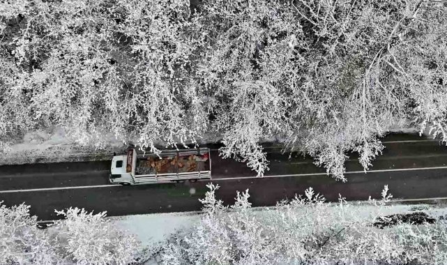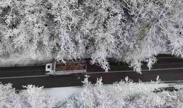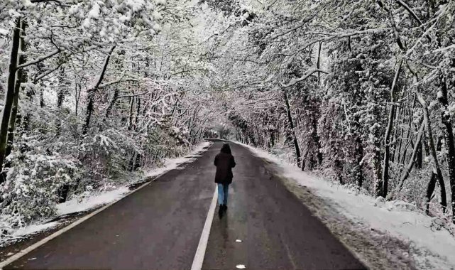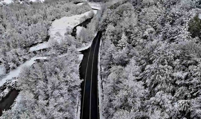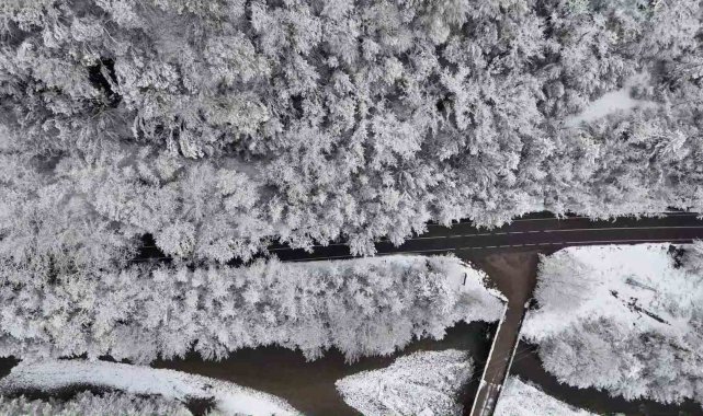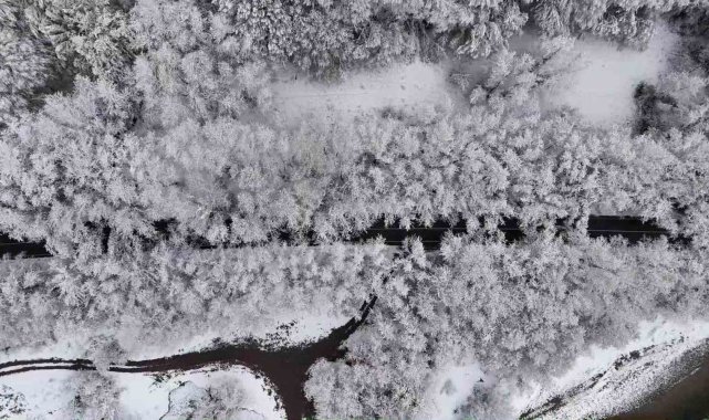 Yılın her döneminde doğaseverlerin ilgisini çeken ağaç tünel, karla birlikte görsel şölen oluşturdu. O anlar dron ile görüntülendi.