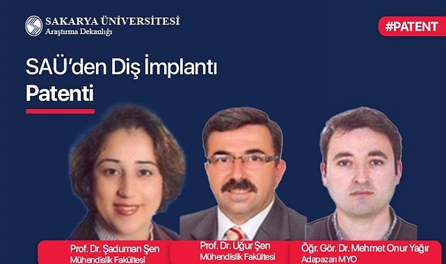 Sakarya Üniversitesi Mühendislik Fakültesi Öğretim Üyeleri Prof. Dr. Şaduman Şen, Prof. Dr. Uğur Şen ve Adapazarı MYO Öğr. Gör. Dr. Mehmet Onur Yağır'ın geliştirdiği "Diş İmplantı Komplesinde Gerçek Diş Elasto-plastik ve Sınırlı Visko-elastik Hareketine Uyumlu Küresel ve Eliptik Geometrili Abutment Kullanımı" başlıklı patent başvurusu tescil edildi.