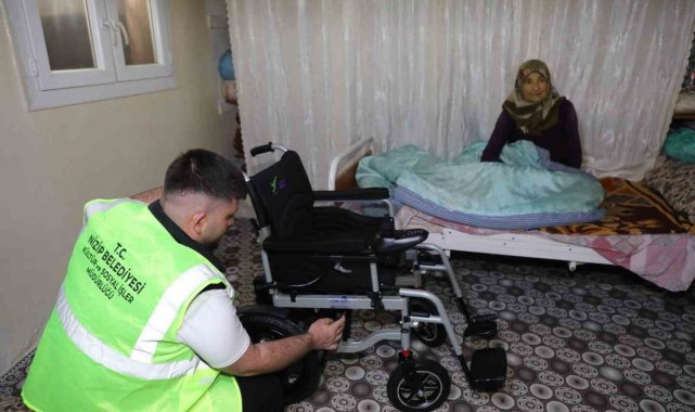 Nizip Belediyesi, ilçedeki engelli 2 vatandaşa akülü ve manuel sandalye hediye etti.