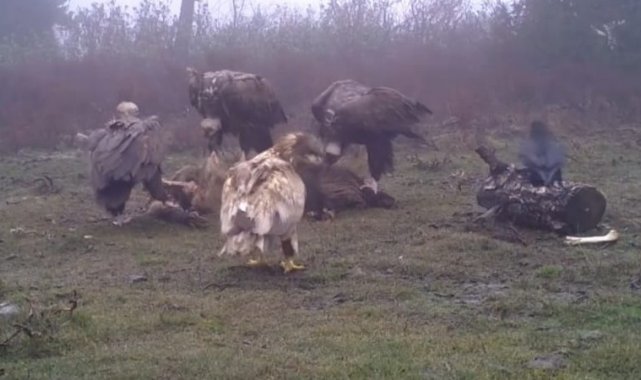 Dünyanın en tehlikeli kanatlı avcıları olarak bilinen kaya kartalı, kara akbabaları ve kuzgun Afyonkarahisar'ın Sandıklı ilçesindeki Akdağ'da kurulan fotokapan tarafından birlikte görüntülendi.