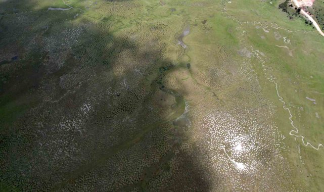 Sakarya'nın Taraklı ilçesinde yer alan ve bin 100 metre rakıma sahip Karagöl Yaylası, şehrin en büyük yaylalarından biri olma özelliğini taşıyor. Şehir merkezine yaklaşık 100 kilometre uzaklıktaki bölge, köknar, kayın ve çam ağaçlarıyla kaplı yoğun ormanlarla çevrili bulunuyor. 567 hektarlık geniş alana sahip olan bölge, bol oksijenli havası ve soğuk içme sularıyla adeta doğal bir terapi merkezi niteliği taşıyor. Karstik özellikleri ve düdenleriyle öne çıkan alan, ilkbaharda suyla kaplanarak eşsiz bir manzara sunuyor. Adını, yağışların ardından düdenlerde biriken suların uzaktan bakıldığında göl görünümü oluşturmasından alan Karagöl, bu özelliğiyle dikkat çekiyor. Havadan kaydedilen görüntülerde, karstik oluşumların meydana getirdiği çöküntüler ve yıl boyunca su akışıyla şekillenen menderesler net şekilde gözlemlendi. Toprak yüzeyindeki dalgalı desenler ve kıvrılarak ilerleyen su kanalları, bölgenin jeolojik karakterini ortaya koyarak benzersiz bir görünüm oluşturuyor. Doğa yürüyüşleri, yayla turizmi ve fotoğraf safarileri için uygun şartlar sunan bölgede geleneksel yaşam da sürdürülüyor. Karagöl Yaylası; doğal peyzajı, zengin florası ve jeomorfolojik özellikleriyle hem bilimsel çalışmalar hem de doğa turizmi açısından önemli bir potansiyel barındırıyor.
