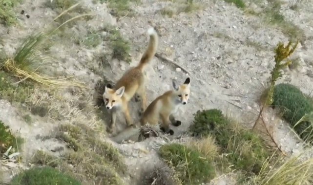 Uzun süre havadan kaydedilen görüntülerde tilki ailesinin ekseriyâ yılan avlayarak beslendiği tespit edildi. Etraftan gelen sesleri tehlike olarak algıladıklarında ise hızlıca yuvalarına sığındıkları anlar dikkat çekti.