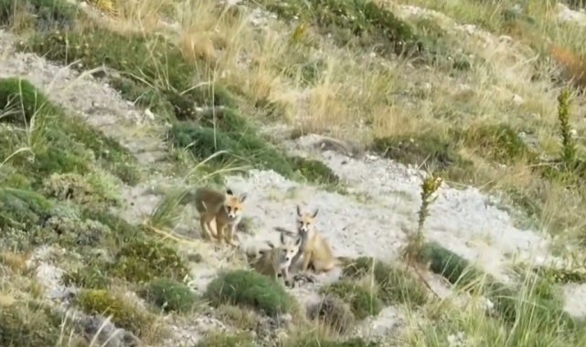 Dağlık bir bölgede yuva yapan tilki ailesi, kameraya yansıyan sevimli halleriyle izleyenlerin yüzünde tebessüm oluşturdu. Yavru tilkilerin yuvalarının önünde birbirleriyle oynadığı anlar renkli görüntüler oluştururken, anne tilkinin zaman zaman çevreyi gözetleyerek yavrularını koruduğu görüldü.