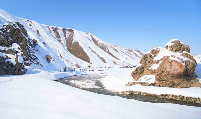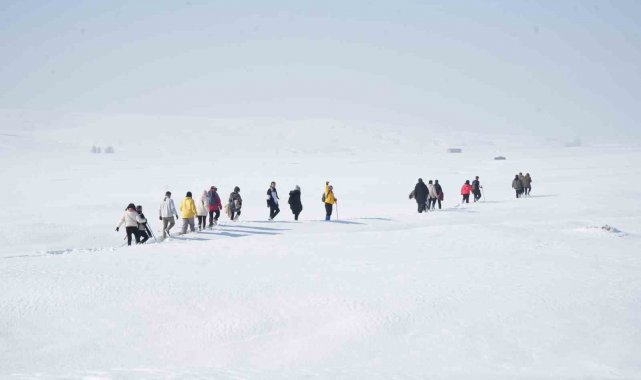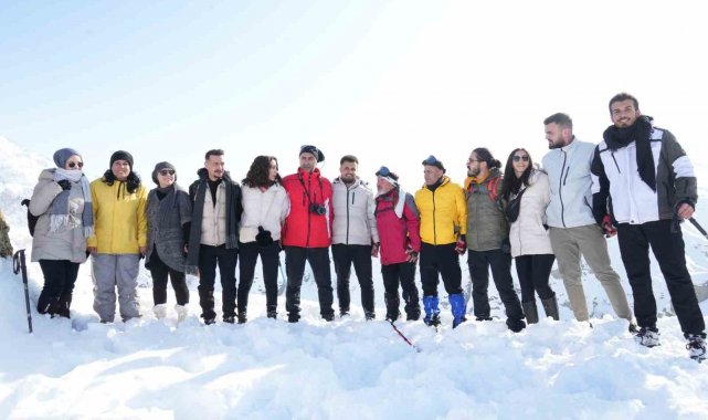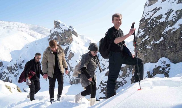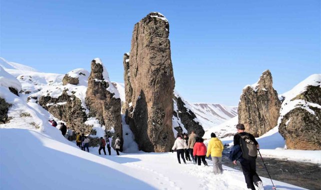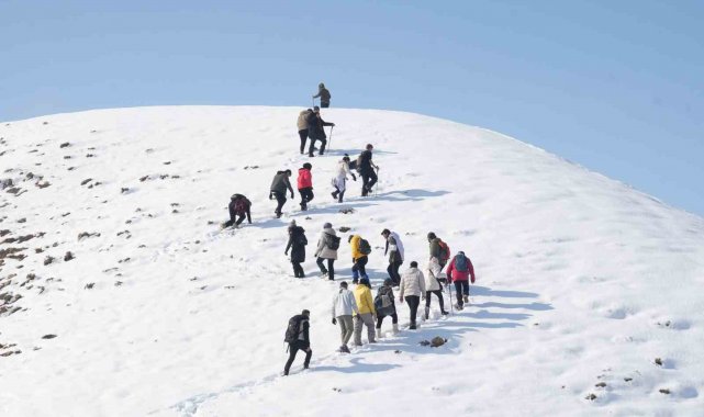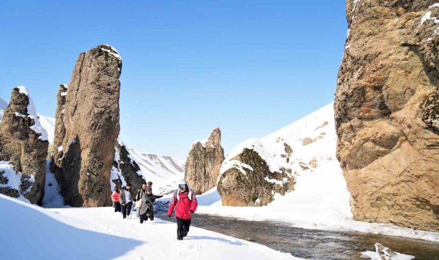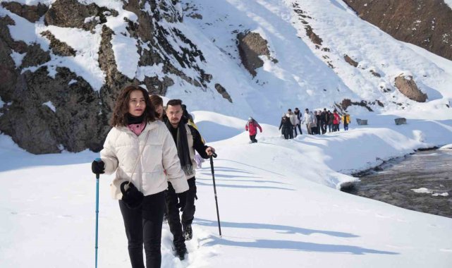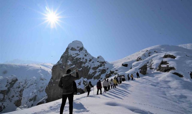 Muş'ta bir araya gelen doğaseverler, Kızılağaç Kanyonu'nda gerçekleştirdikleri doğa yürüyüşüyle bölgenin karla kaplı eşsiz manzarasını tanıttı.