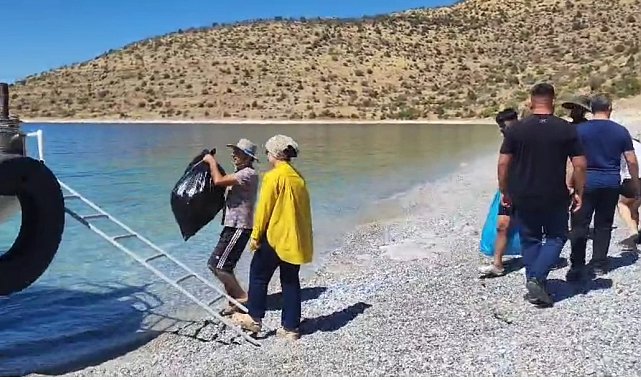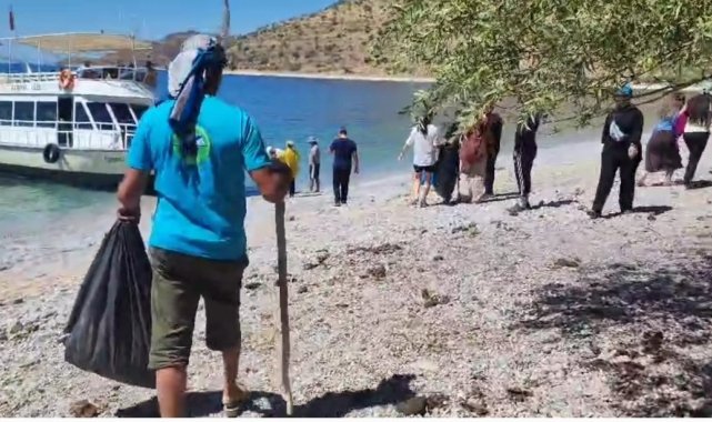 Van Gölü'nün Ağın sahilinde doğaseverler, piknikçilerin bıraktığı çöpleri toplayarak çevre temizliği yaptı. Gönüllüler, doğayı koruma çağrısında bulundu.
