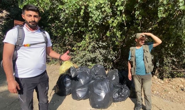 Doğaseverlerden piknikçilere tepki: Kaval Şelalesi'nde 13 torba çöp toplandı