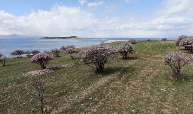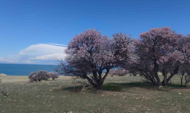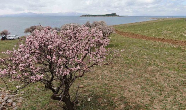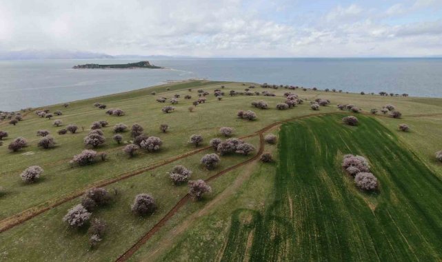 Van Gölü'ndeki dört büyük adadan biri olan Çarpanak Adası ve karşısındaki yarımada, bugünlerde çiçek açan badem ağaçlarıyla doğaseverleri ağırlıyor.