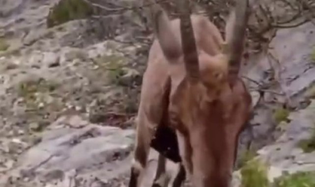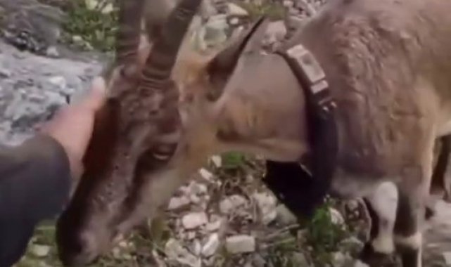 Doğaya salınan yaban keçisiyle vatandaşın sıcak diyaloğu yürekleri ısıttı