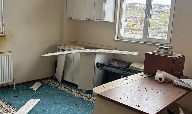 Ağrı'nın Doğubayazıt ilçesine bağlı Bardaklı Köyü Camii, yıldırım düşmesi sonucu büyük hasar gördü.