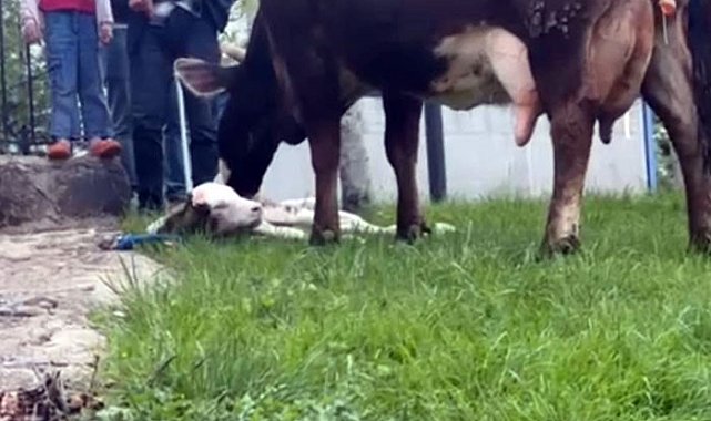 Doğum sancısı çeken ineği, belediye ekipleri doğurttu