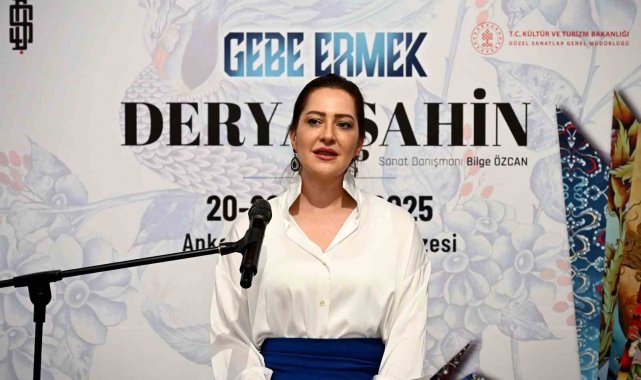 Kültür ve Turizm Bakanlığı'nın desteğiyle Resim Heykel Müzesi'ndeki Mihri Müşfik salonunda açılışı yapılan sergide 18 eser yer aldı. İnsanın doğum ve ölüm arasındaki yolculuğunun tema edildiği sergiye "Gebe-Ermek' adını verdiğini söyleyen sanatçı Derya Şahin, "Geleneksel sanatların ruha sefa, cana şifa gücüne olan inançla çıktım bu yola Hem sanatın ruhumuzu teskin eden iyileştirici gücüne dikkat çekmek hem de insanın kadim yolculuğuna estetik bir dokunuş yapmak istedim. Sergideki her eser kendi içinde bir hikâye barındırırken, bir bütün halinde değerlendirildiğinde yaşamın kendisini ele alan bir seyahat gibi oldu. Bu süreçte bana destek veren herkese teşekkür ederim" dedi.