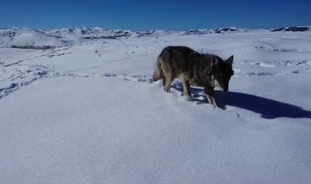Bayburt'un Demirözü ilçesine bağlı Karayaşmak köyünde aç kalan kurtlar yerleşim alanına indi. Kurtlar güvenlik kamerasına yansırken, doğum yapan ineğinin yanına ahıra giderken kurt sürüsünü fark eden köy muhtarı Reşat Altun vatandaşların herhangi bir saldırıya uğramaması için dronla kurtların izini sürdü.