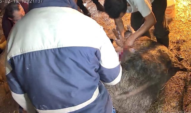 Aydın'ın Karpuzlu ilçesine bağlı kırsal Tekeler Mahallesi'nde doğum yapamayan bir ineği ekmek bıçağı ile ameliyat edip sezaryen yapmaya kalkan bir grup ineği telef etti. İlginç olay güvenlik kameralarına yansırken, görüntüler izleyenlerin adeta kanını dondurdu.