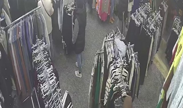 Adapazarı Dar Sokak'ta bulunan bir giyim mağazasında meydana gelen olayda, kadın hırsız adeta dolabından kıyafet seçer gibi reyondaki elbiseyi çalarak kayıplara karıştı. Hırsızlığın yaşandığı anlar ise saniye saniye güvenlik kamerasına yansıdı. Görüntülerde, kadını reyondan kıyafeti incelemesi, katlayarak çantaya koyması ve dükkandan çıkması yer alıyor.
