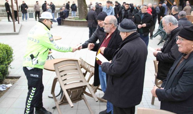 Samsun'un Çarşamba İlçe Emniyet Müdürlüğü ekipleri, dolandırıcılık olaylarına karşı farkındalık oluşturmak amacıyla cuma namazı çıkışında broşür dağıttı.