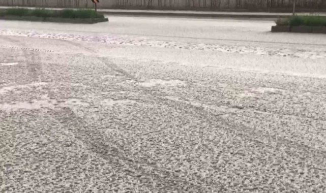Kars'ta etkili olan dolu yağışı bir anda kent merkezini beyaza bürüdü, trafikte seyir halinde olan sürücüler zor anlar yaşadı.
