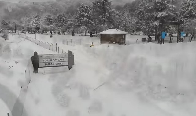 Domaniç Topuk Yaylası Tabiat Parkı'nın karla kaplı güzelliği havadan dronla görüntülendi
