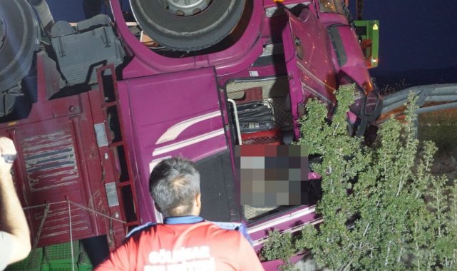 Burdur'un Gölhisar ilçesinde domates yüklü kamyonun şarampole devrilmesi sonucu meydana gelen kazada sürücü hayatını kaybetti.