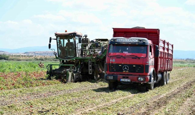 Türkiye'nin salçalık domates ihtiyacının yüzde 40'ını karşılayan Karacabey Ovası'nda hasat tüm hızıyla devam ediyor.