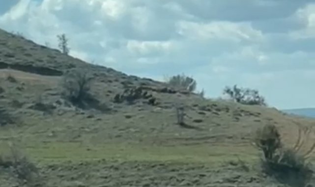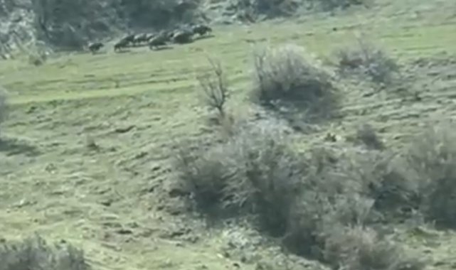 Sivas'ta sürü halinde dolaşan domuzlar, genç çiftçinin cep telefonu kamerasına yansıdı.