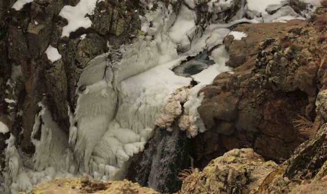 Olumsuz hava şartlarının devam ettiği Afyonkarahisar'da soğuk hava sebebiyle donan şelale ve göller, hayranlık uyandıran görüntüler oluşturdu.