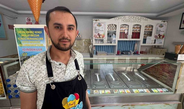İbrahim Özdemir, babasından devraldığı bu mesleği çocuğuna bırakmak istediğini söyledi. Günde 500 kilogram süt tükettiği iş yerinde mevsiminde aldığı meyvelerle daha çok çeşit yaptığım anlatan Özdemir, "Kaliteli bir dondurma için sütümüz geldi. Sütümüz salep ve şekerle karıştı. Önce soğutmaya alacağız ve sonrasında gerçek doğal meyvelerle dondurma yapımına hazırlayacağız. Burada 50 çeşit dondurma çeşidi yapıyoruz ve meyveli dondurmalarımız yüzde yüz gerçek meyvelerden yapılmakta. Bizim için insan sağlığı çok önemli. Zamanında alarak derin dondurucuda saklıyoruz, ondan sonra çıkarak dondurma yapıyoruz. Son günlerde çıkan haberlerde dondurmalarına katkı maddelerin konulduğu yönünde haberler çıktı. Bu maddeler meyveli dondurmaların renklendirilmesinde kullanılıyor. Doğal renklendiriciler sağlık açısından bir risk oluşturmuyor ancak sentetik renklendiriciler sağlığı olumsuz etkileyebiliyor. Örnek verelim, limonlu dondurma aldınız. Eğer onun rengi sapsarıysa, orada boya kullanıldığı bellidir. Çünkü limonu kattığınız zaman, renk beyazdan sarıya çok hafif döndürebilir ama sapsarı renk oluşmaz. Meyveli dondurma tüketilirken içinde sentetik renklendirici kullanılmadığından emin olunması gerekir" dedi.
