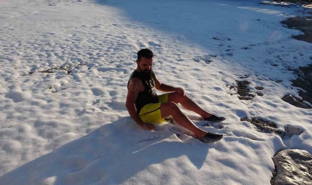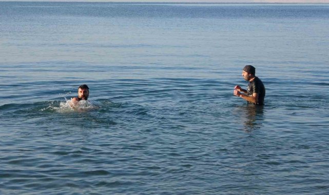 Doğu Anadolu Bölgesi'nde kış şartları yüzünü iyice gösterirken, Van'da görev yapan 2 öğretmen, sıradışı bir olaya imza attı. Dondurucu soğuğa aldırış etmeden Van Gölü'nün şifalı ve soğuk sularına dalan Muhammed Türken ve meslektaşı Kamuran Çelik, hava sıcaklığının sıfırın altında 9 dereceye kadar düştüğü kentte, yüzdükten sonra kar üstünde güneşlenmesi ilgiyle izlendi. Akşam saatlerinde Edremit ilçesi sahilinde bir araya gelen Türken ve Çelik, termometrelerin eksi 9 dereceyi gösterdiği dakikalarda kendilerini Van Gölü'nün turkuaz sularına bıraktı. Türken'in sosyal medya hesabından canlı paylaştığı o anlar büyük ilgi gördü.