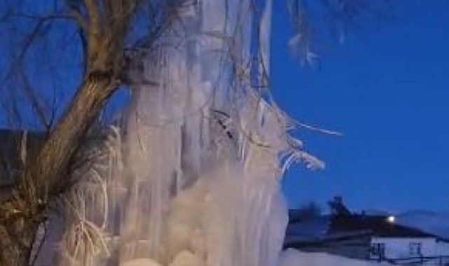 Ardahan merkeze bağlı Çimenkaya köyü ile Uzunova köyü arasında patlayan su hattından fışkıran su, hava sıcaklığının sıfırın altında seyretmesi nedeniyle donarak dev bir buz kütlesi oluşturdu. Ortaya çıkan görüntü, adeta buzdan bir heykeli andırırken vatandaşların da ilgisini çekti.